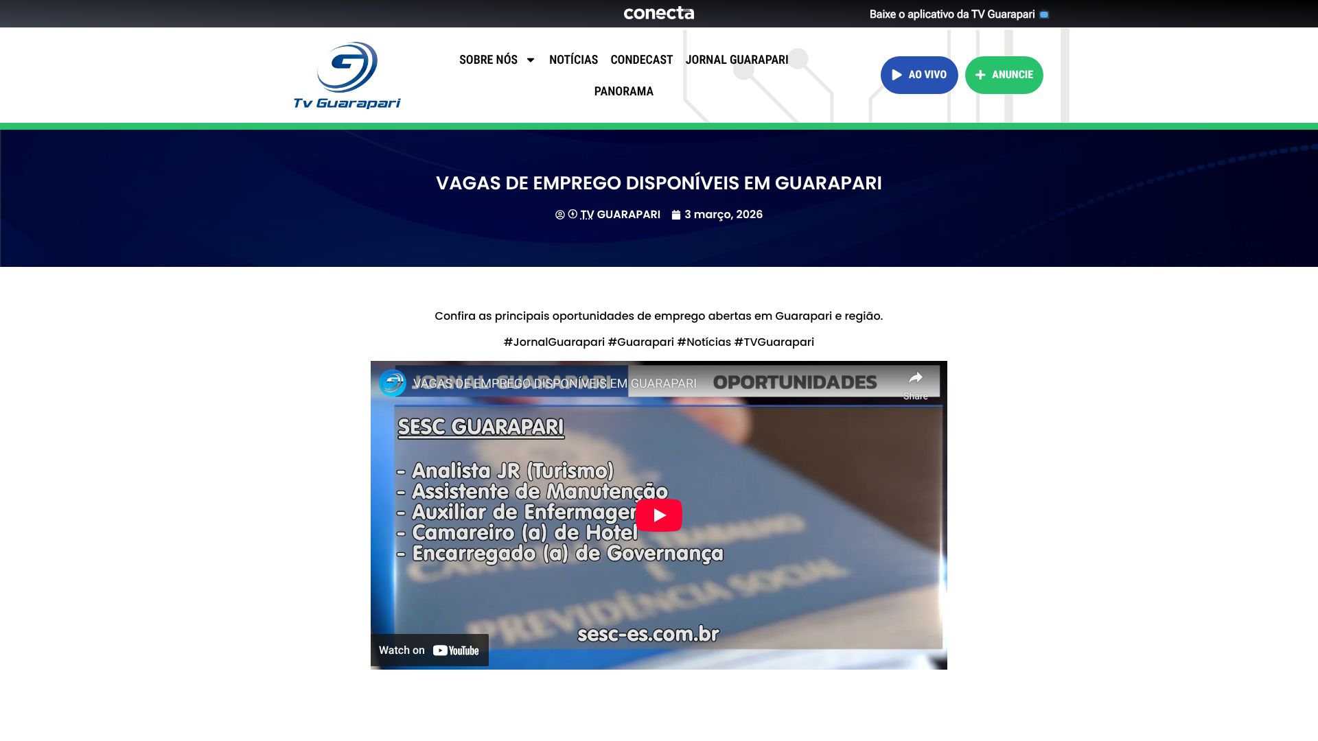 VAGAS DE EMPREGO ABERTAS EM GUARAPARI