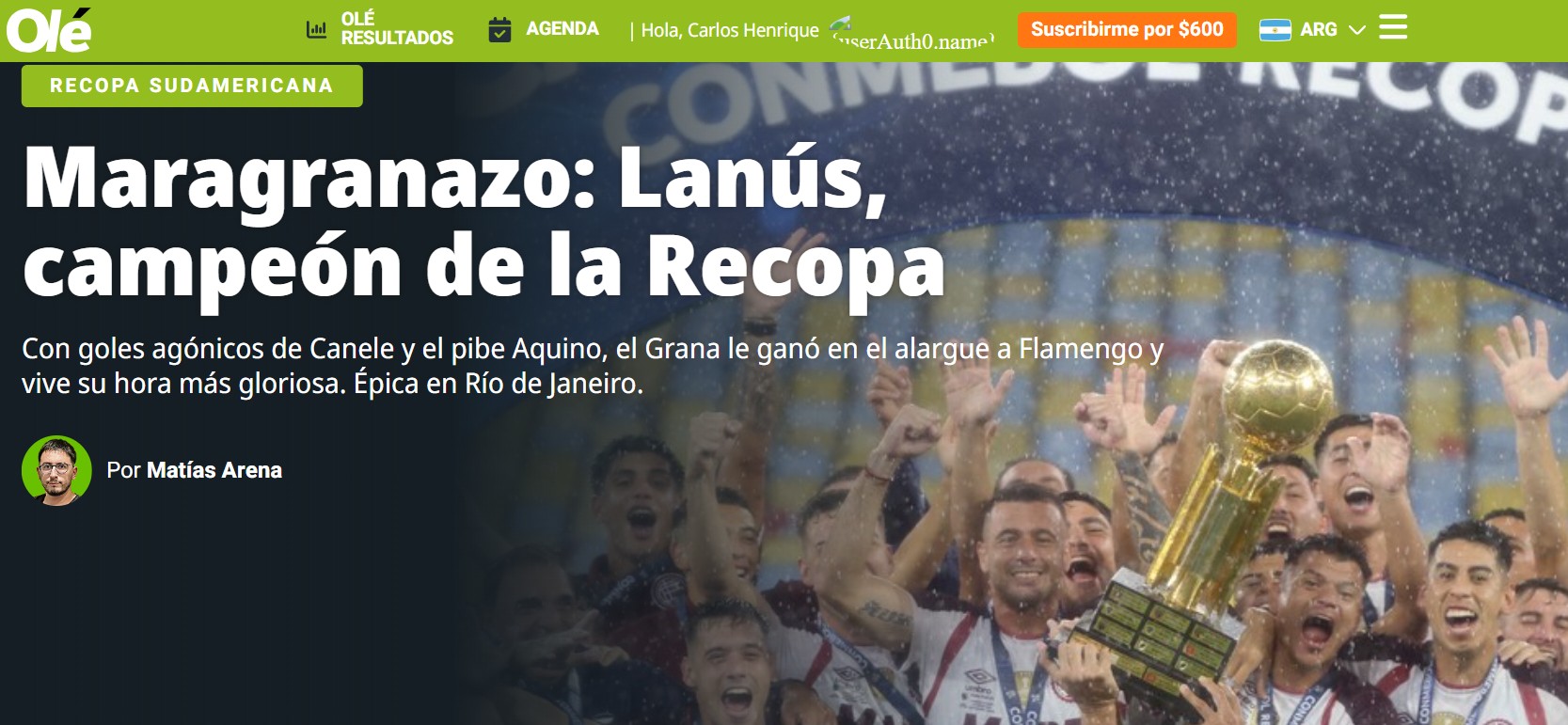 Imprensa argentina repercute vitória do Lanús na Recopa: "Venceu dos milhões do Flamengo"