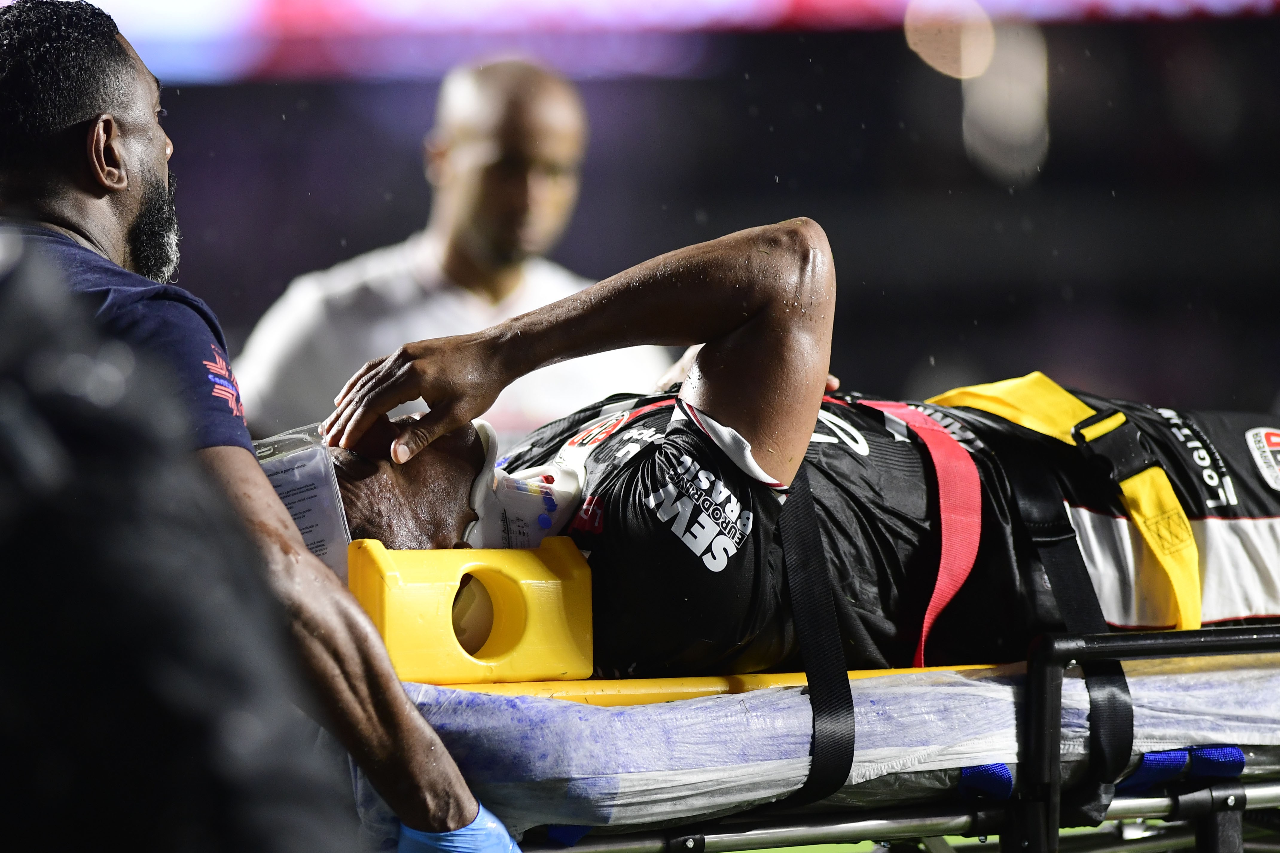 Jogador do Primavera cai desacordado após choque de cabeça e deixa Morumbis de ambulância