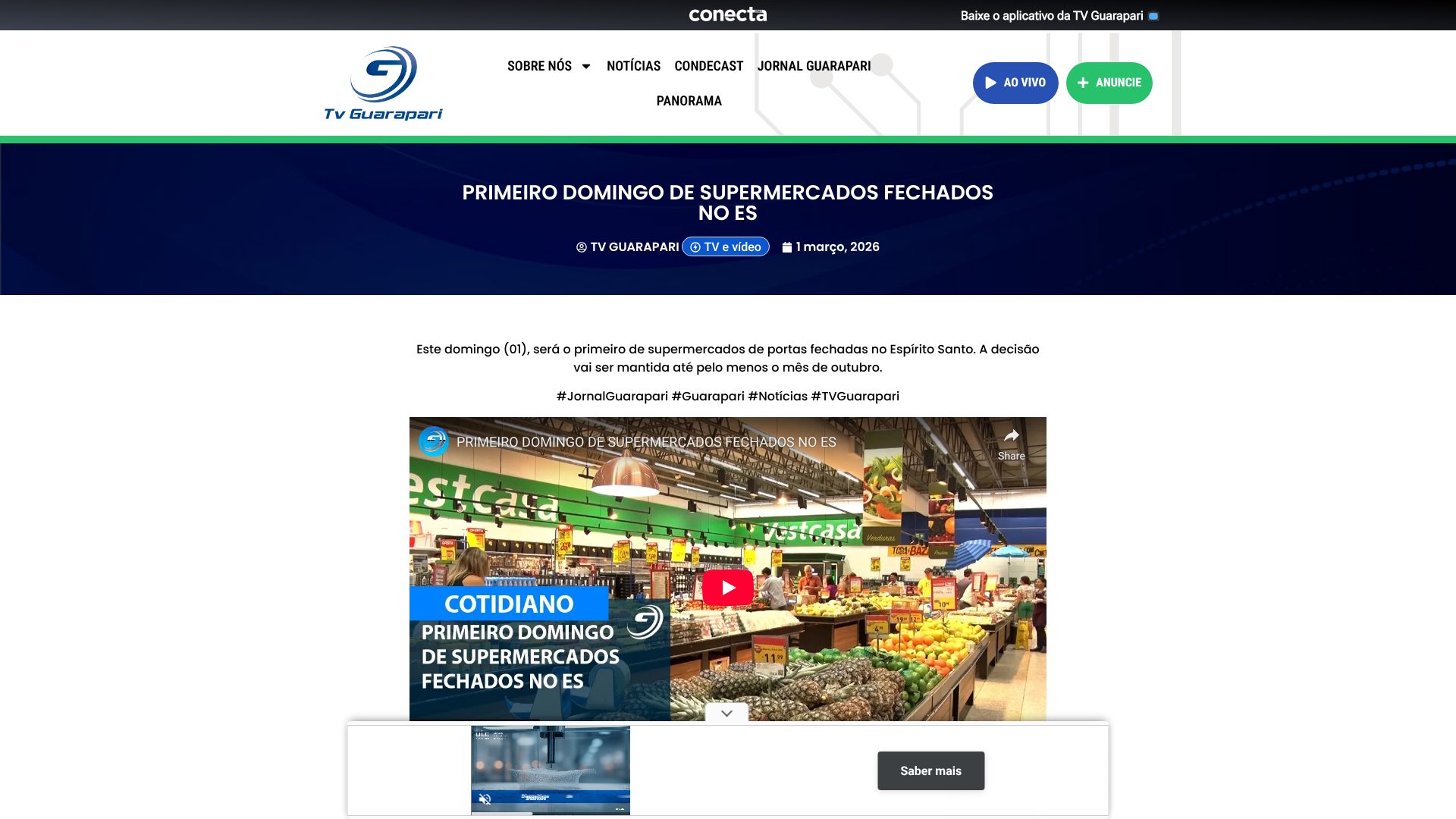 PRIMEIRO DOMINGO DE SUPERMERCADOS FECHADOS NO ES - TV Guarapari