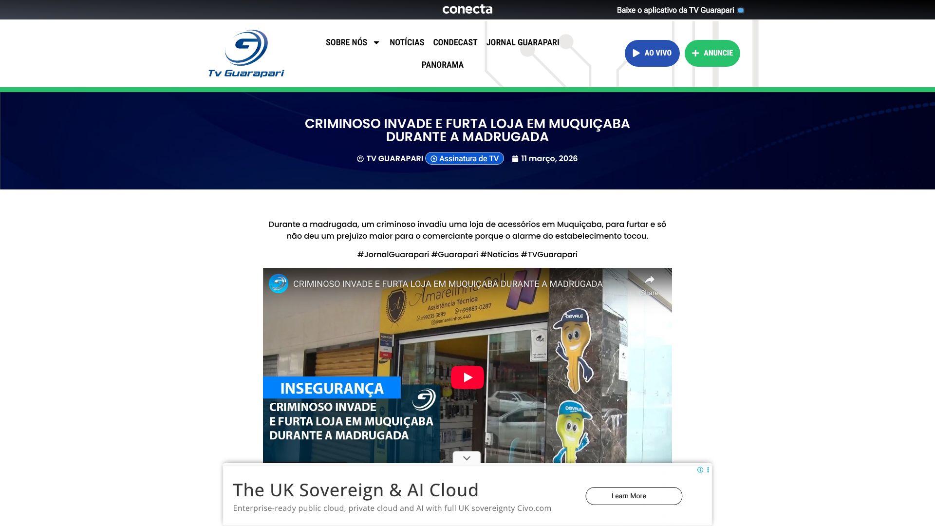 CRIMINOSO INVADE E FURTA LOJA EM MUQUIÇABA DURANTE A MADRUGADA