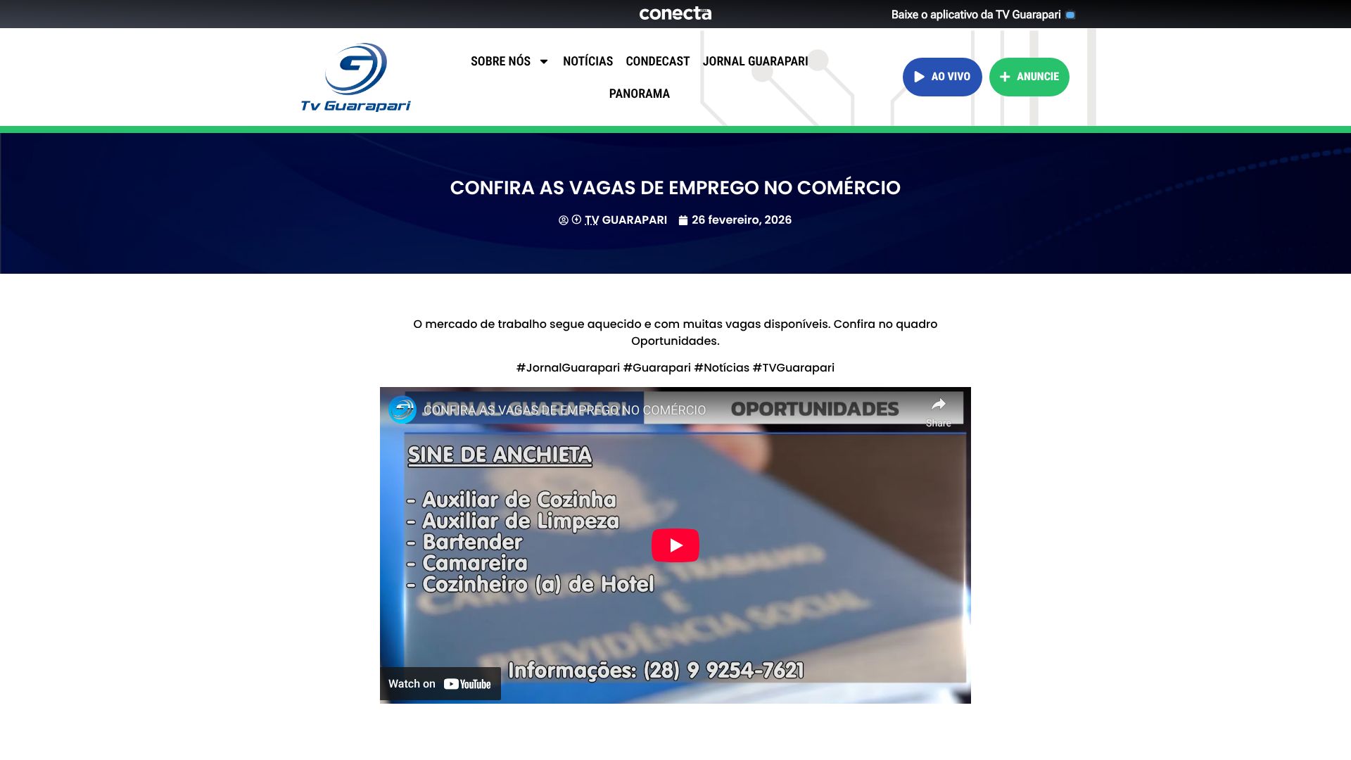 CONFIRA AS VAGAS DE EMPREGO NO COMÉRCIO